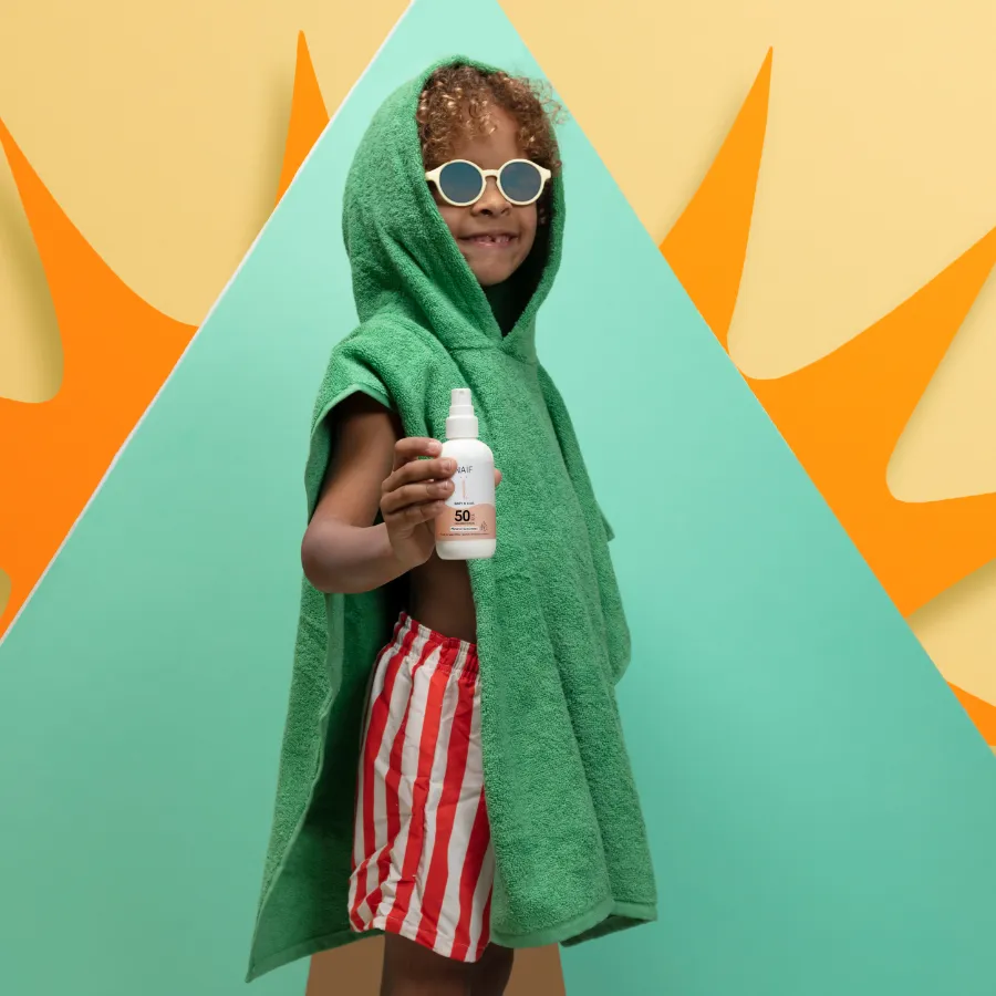 Užite si pobyt na slniečku bez starostí! NAÏF Ochranný sprej na opaľovanie SPF 50 bez parfumácie pre deti a bábätká (Baby&Kids SPF 50 Spray 0% Perfume) s minerálnym filtrom v podobe oxidu zinočnatého bez nanočastíc (Zinc Oxide non nano) je teraz posilnený o hybridný UV metoxyfenyl triazín.