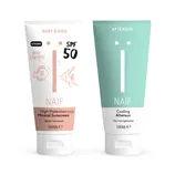 Naïf myslí na všetko! Nie iba na ochranu pokožky, ale aj na jej regeneráciu potom, ako sa po dni strávenom na slniečku vrátime s deťmi domov. Minerálne UV filtre, slnko, voda môžu pokožku vysušovať. Preto je dobré jej po pobyte na slniečku dodať potrebnú hydratáciu a poskytnúť jej čas na regeneráciu. Aby vám tento krok Naïf čo najviac uľahčil, vytvoril Sprej po opaľovaní pre deti a bábätká (Aftersun Baby&Kids Spray 0 % perfume). Sprej umožňuje veľmi rýchlu a jednoduchú aplikáciu. Citlivú detskú pokožku účinne skľudňuje, ochladzuje a hydratuje.