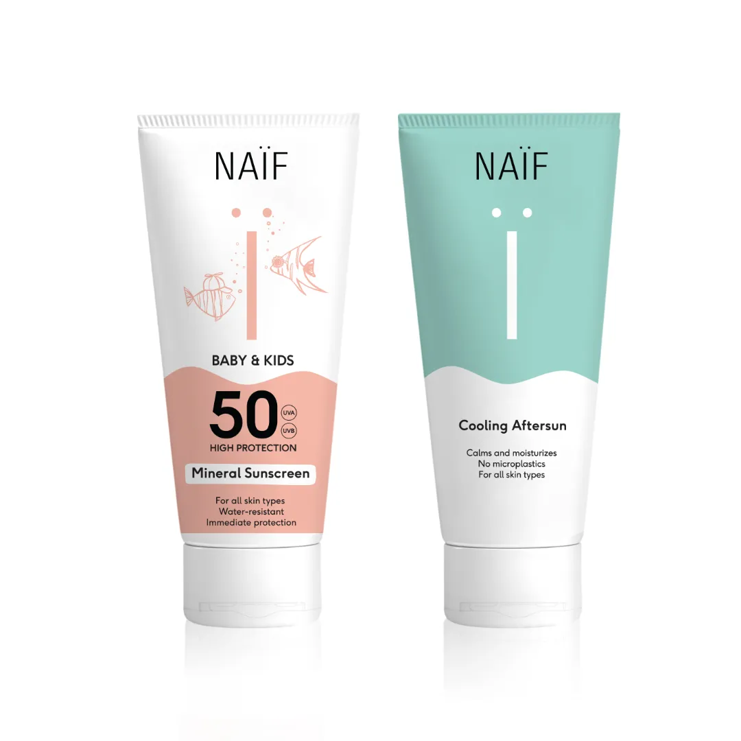 NAÏF SUN DUO Ochranný krém na opaľovanie SPF 50 a Chladivý gél po opaľovaní 2 x 100 ml