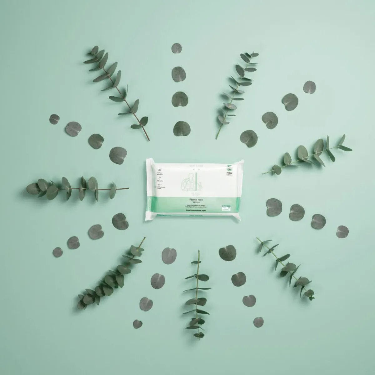 I tentokrát myslel NAIF na našu planétu. Obrúsky neobsahujú žiadne plasty. Vyrábajú sa z eukalyptovej buničiny, ktorá sa spracováva do vlákien prírodnou cestou. Sú 100% biologicky odbúrateľné behom 8 –10 týždňov. Obal je už ako tradične vyrobený z bioplastu, konkrétne z cukrovej trstiny.