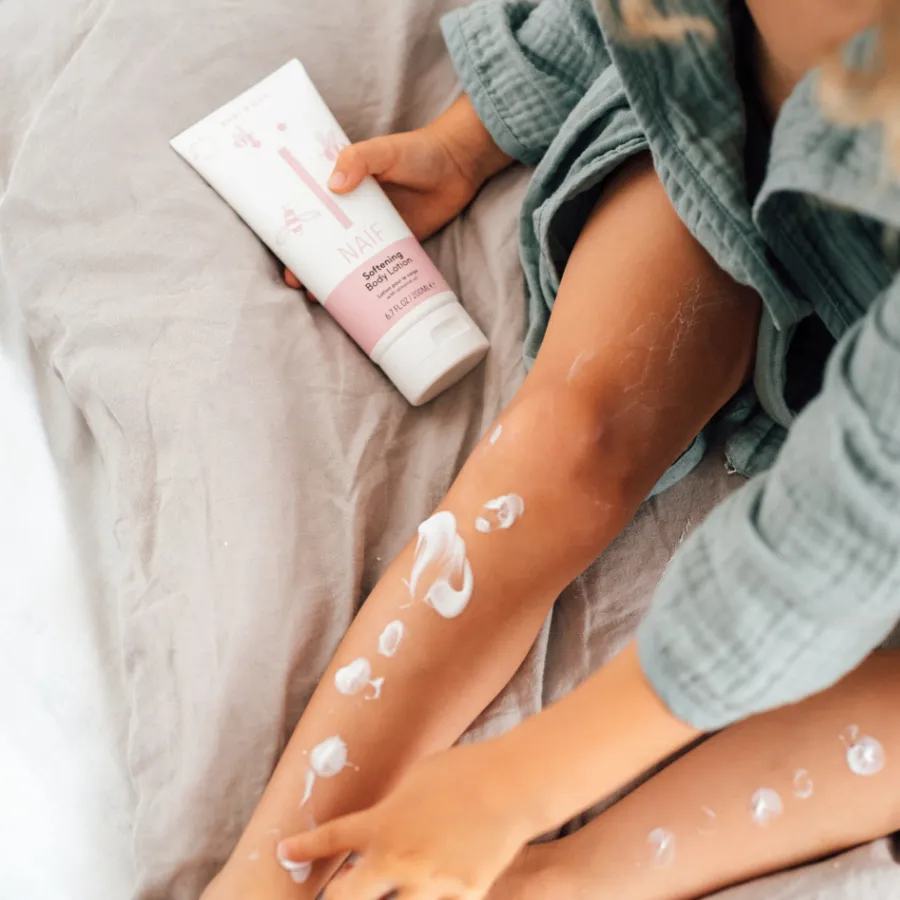 Prírodné Zjemňujúce telové mlieko hydratuje a vyživuje pokožku detí a bábätiek prírodnými olejmi, ako je makadamiový olej, mandľový olej, avokádový olej a olej zo sladkých mandlí. Má príjemnú textúru, ktorá nie je mastná a nezanecháva lepkavý pocit. Pokožku detí a bábätiek zanecháva hodvábne jemnú, hydratovanú a vyživenú.