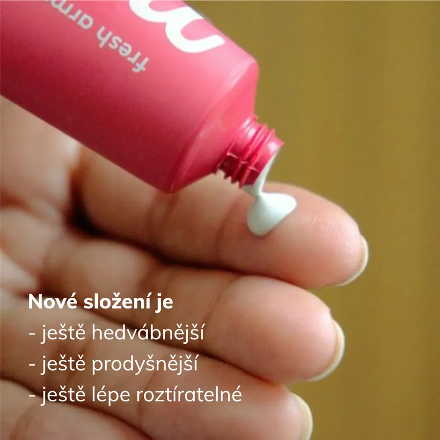 Nuud je stále neuveriteľne účinný, ale oveľa menej krémový a mastný. Pretože sa nerozpúšťa vo vode, môžete sa sprchovať, cvičiť alebo skrátka robiť, čo chcete, bez toho aby sa znížila účinnosť. Neupcháva potné žľazy a nezabraňuje tak detoxikácii tela. Nezanecháva stopy na koži ani na oblečení.