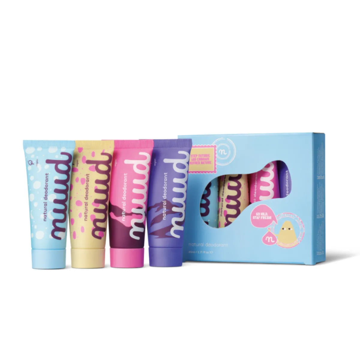 Family Pack je rodinné balenie dezodorantov nuud. Pre teba a tvojich troch spolubývajúcich. Alebo pre teba a tvojich najlepších priateľov, kolegov či spoluhráčov. Inými slovami pre každého, koho nazývaš rodinou. Balenie sa hravo vojde do kabelky a na cesty. Vydrží približne 19 - 20 týždňov.