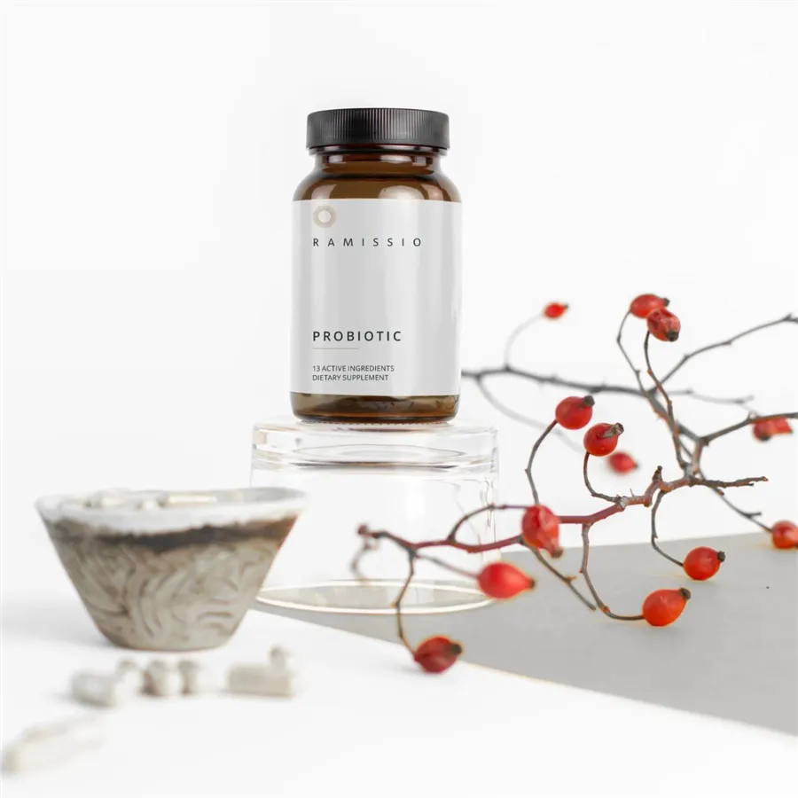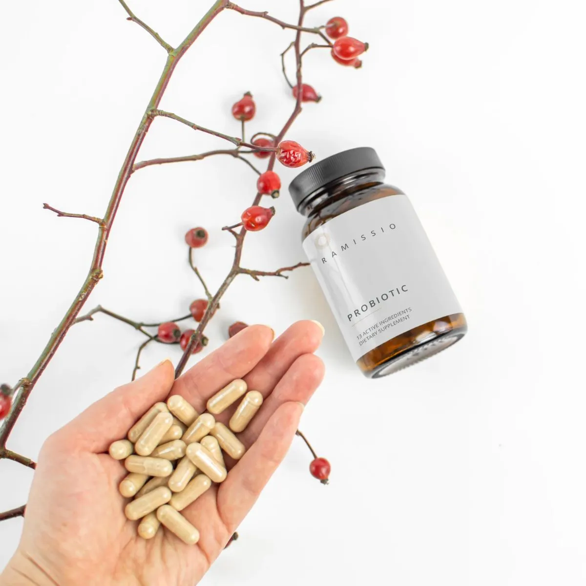 Ramissio Probiotic je výživový doplnok na rastlinnej báze, ktorý spája 11 starostlivo vybraných probiotických kmeňov s prebiotikom (inulínom) a vytvára tak účinnú podporu pre vaše trávenie aj imunitu. Táto vyvážená zmes pomáha udržiavať zdravé črevné prostredie, podporuje prirodzenú peristaltiku a obmedzuje množenie nežiaducich mikroorganizmov. Vďaka tomu prispieva k správnemu tráveniu, zmierňuje plynatosť aj nadúvanie a pomáha telu efektívne vstrebávať živiny. Zdravé črevá sú pritom kľúčom nielen k silnejšej imunite, ale aj k celkovej pohode, lepšej nálade a krajšej pleti.