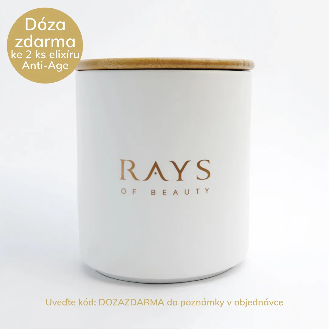 Praktickú, keramickú dózu získate k nákupu druhého kusu z doplnku stravy Anti-age Elixír Rays of Beauty. Uveďte kód v poznámke: DOZAZDARMA.