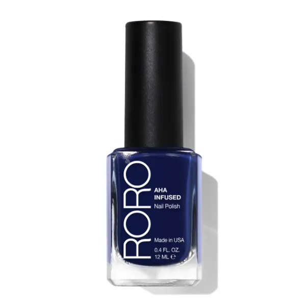 Roro850023300027RO47963WMRH000101Tmavý a bohatý odtieň modrého laku Why so blue zvýrazní nechty a skrášli vďaka obsahu AHA kyselín. Je cruelty-free a bez lepku.