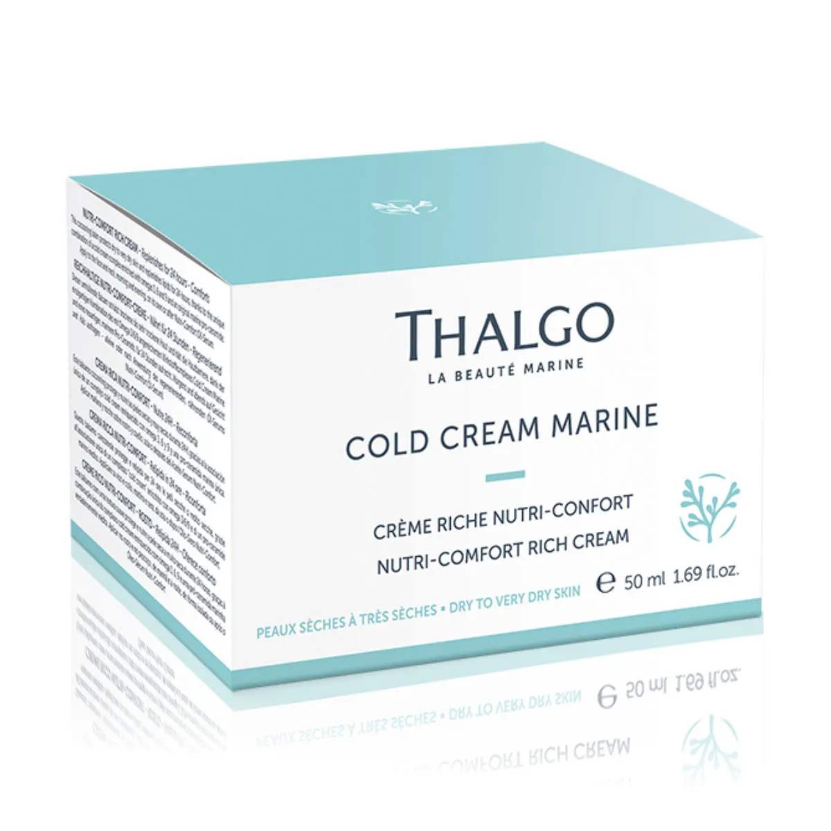 Nutri-Comfort bohatý výživný krém Thalgo Cold Cream Marine s obsahom posilneného vyživujúceho komplexu a morského pro-ceramidu dopĺňa lipidy, prináša suchej pleti intenzívnu výživu a komfort. Obnovuje kožnú bariéru stimuláciou syntézy ceramidu. Pleť je hladšia a známky stárnutia sú redukované. Krém je obohatený o olej z boráku lekárskeho, ktorý vďaka vysokej koncentrácii esenciálnych mastných kyselín omega 6 dopĺňa lipidy hlboko do pleti. Super bohatá textúra balzámu sa rozplýva na pleti. Okamžite ukľudňuje a dlhodobo vyživuje.