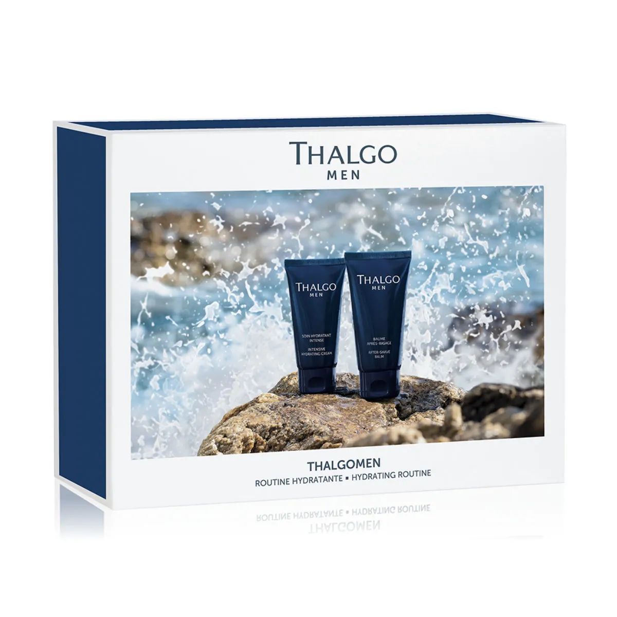 Darčekový set obsahuje:- Intenzívny hydratačný krém pre mužov, 50 ml- Balzám po holení pre mužov bez alkoholu, 75 mlIntenzívny hydratačný krém obsahuje riasu Algue Bleue Vitale®, ktorá dodáva energiu, podporuje regeneráciu a bojuje proti prvým známkam stárnutia. Seve Marine® hydratuje, posilňuje kožnú bariéru a zlepšuje súdržnosť buniek.Príjemný balzám po holení (After Shave Balm) bez alkoholu rýchlo hojí podráždenie a drobné ranky po holení. Má ľahkú, sviežu textúru a zanecháva pleť hebkú a pružnú.Kozmetika Thalgo pre mužov zodpovedá špeciálnym požiadavkám ich pleti: je silnejšia, viac sa mastí a býva veľmi namáhaná každodenným holením. Produkty Thalgo ponúkajú odborné riešenie problémov tejto pleti. Sú vysoko účinné a príjemné. Riasa Algue Bleue Vitale® obnoví svieži vzhľad aj pocit po vyčerpávajúcom dni.