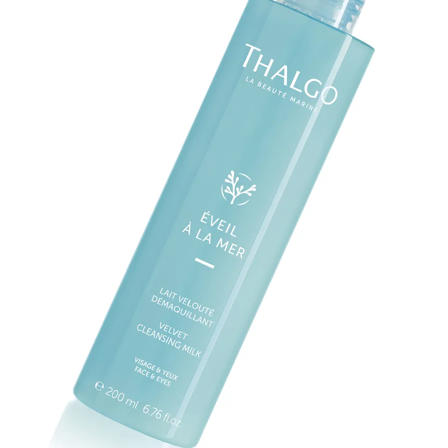 Hodvábne odličovacie mlieko Thalgo Éveil a la Mer jemne a účinne odličuje a čistí pleť i oči a navracia komfort všetkým typom pleti vrátane citlivej. Filtrát patentovaných Mikronizovaných morských rias dodáva pleti minerály a mikroživiny, ktoré sú nevyhnutné k jej správnemu fungovaniu. Pleť revitalizuje a posilňuje. Olej z hroznových semienok a ricínový olej zahalia pleť pod ochranný film, ktorý posilňuje kožnú bariéru a tým bráni strate vody. Rastlinný glycerín pleť hydratuje a zmäkčuje. Odličovacie mlieko má zamatovo hodvábnu textúru s jemnou morskou vôňou pre každodenné chvíle rozmaznávania sa. Obsahuje 96 % zložiek prírodného pôvodu a je v recyklovateľnom obale.
