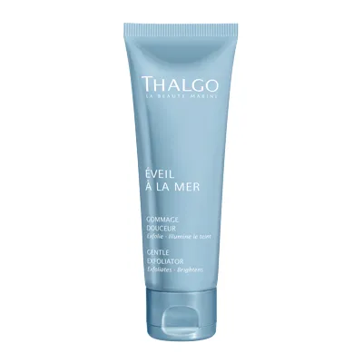 Jemný peeling (Gentle Exfoliator) Thalgo pre suchú a citlivú pleť poskytuje dvojitú jemnú exfoliáciu (mechanickú a chemickú). Vyhladzuje a rozjasňuje. Vďaka mikroguličkám jojobového oleja odstraňuje odumreté bunky pleti bez podráždenia a spôsobenia mikrotrhliniek. Ďalej obsahuje kyselinu fytovú z ryže, ktorá exfoliuje a podporuje vznik nových buniek. Má konzistenciu hebkého krému, ktorý sa príjemne rozpúšťa. Dobre sa oplachuje.
