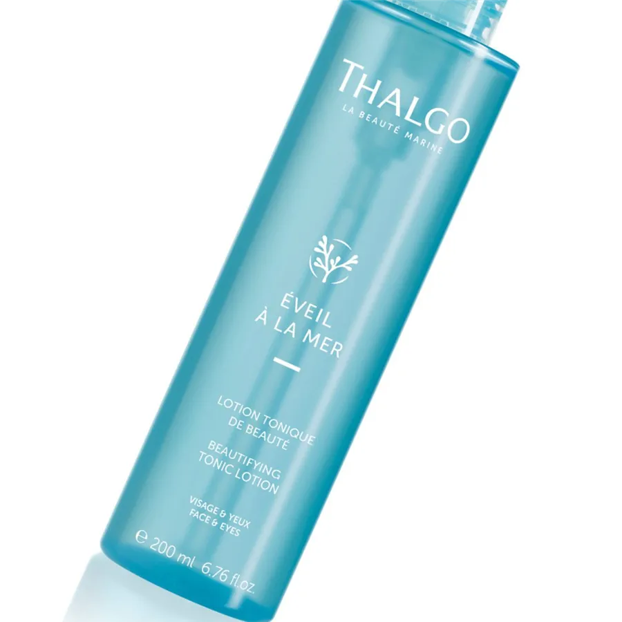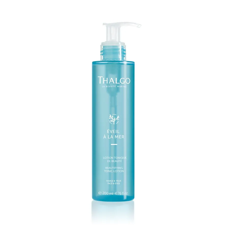 Skrášľujúce pleťové tonikum Thalgo Éveil a la Mer jemne a dôkladne odstraňuje nečistoty a zvyšky make-upu z pleti a z očí. Povzbudzuje a rozjasňuje. Je vhodné na všetky typy pleti vrátane citlivej. Filtrát patentovaných Mikronizovaných morských rias dodáva pleti minerály a mikroživiny, ktoré sú nevyhnutné k jej správnemu fungovaniu. Pleť revitalizuje a posilňuje. Rastlinný glycerín pleť hydratuje a zmäkčuje. Zamedzuje strate vody a tým udržuje optimálnu hydratáciu.