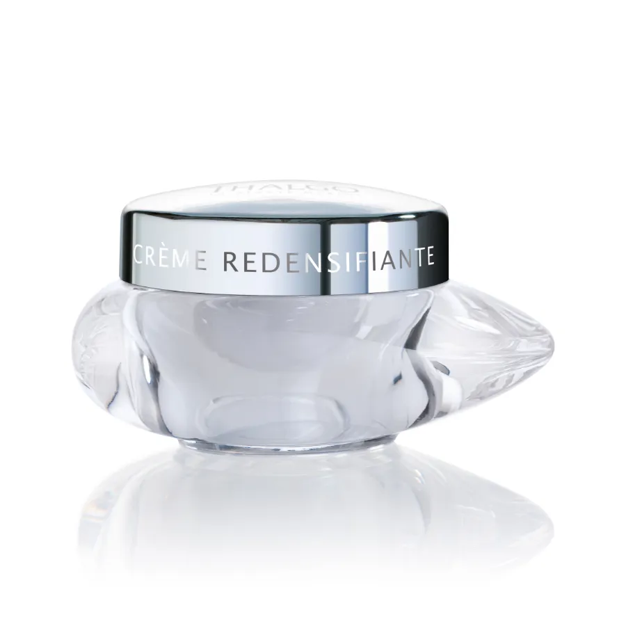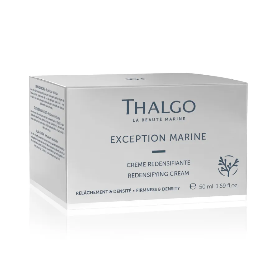 Thalgo Exception Marine Redensifying krém zvyšuje pevnosť a hustotu povädnutej pleti. Obnovuje kontúry tváre, zlepšuje štruktúru a zjednocuje vzhľad pleti. Tento jemný krém je určený pre normálnu až suchú pleť. Krémová textúra obsahuje lipidové aminokyseliny, s ktorými je pleť zamatovo hladká. Krém krásne vonia po bielych kvetoch na základe santalového dreva. Okrem patentovaného komplexu Marine Replenishment Complex® pre spevnenie a hustotu, obsahuje aj extrakt z lekorice, ktorý zjednocuje pleť. (Na suchou až velmi suchou pleť použijte krém Redensifying Rich).