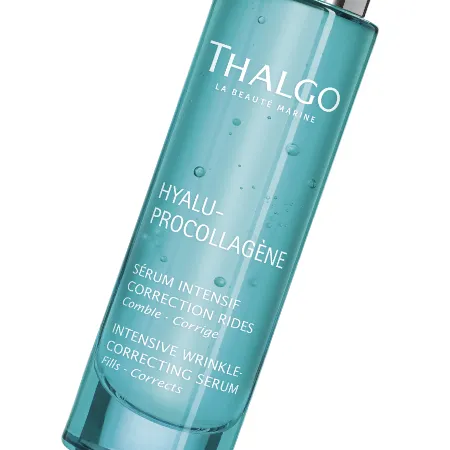 Intenzívne nápravné sérum na vrásky Thalgo Hyalu-Procollagene má trojitú účinnosť proti vráskam. Kombinácia troch kyselín hyalurónových a morského pro-kolagénu pleť okamžite vypne, viditeľne vyhladí vrásky a postupne vyplňuje aj hlboké vrásky zvnútra. Organický extrakt semien lucerny siatej podporuje bunkovú obnovu a stimuluje syntézu kyseliny hyalurónovej a kolagénu I. Sérum má dvakrát väčšiu koncentráciu aktívnych látok oproti krémom. Jeho ľahká fluidná gélová textúra ľahko preniká do pleti pre dosiahnutie maximálnej účinnosti.