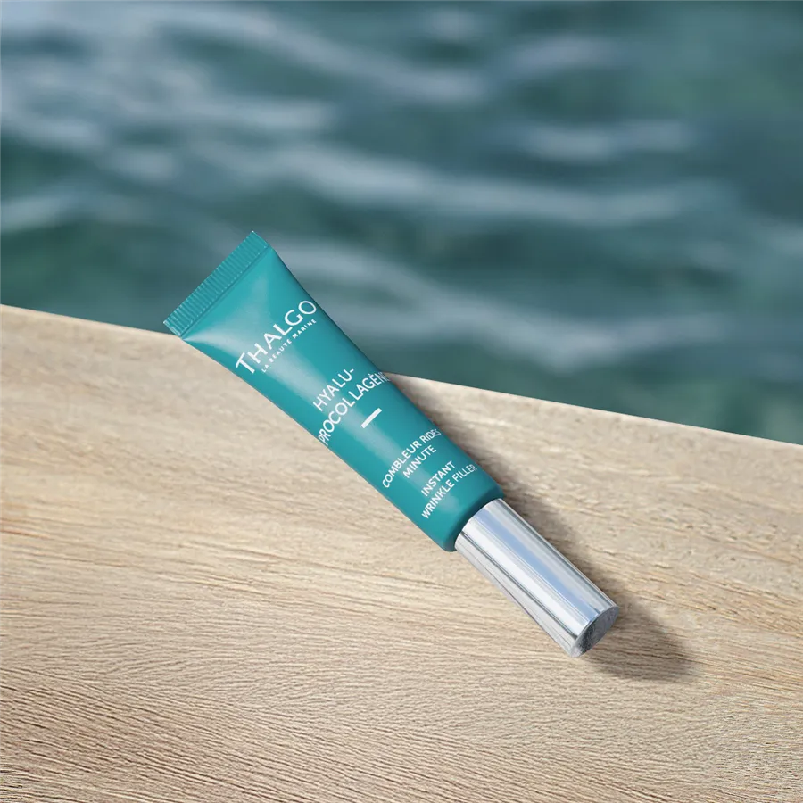 Thalgo Hyalu-Procollagene okamžitý vyplňovač vrások kombinuje morské prokolagény a mikroguličky kyseliny hyalurónovej, ktoré po aplikácii dočasne zväčšujú objem a okamžite vyplňujú vrásky zvnútra. Pokožka je hladšia a vizuálne rovnomernejšia už za jednu minútu. Výsledkom je okamžitý „vypĺňací“ efekt bez injekcií – pokožka vyzerá pevnejšia a mladistvejšia.