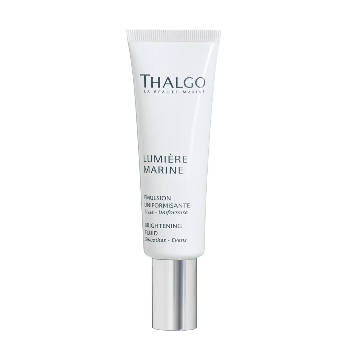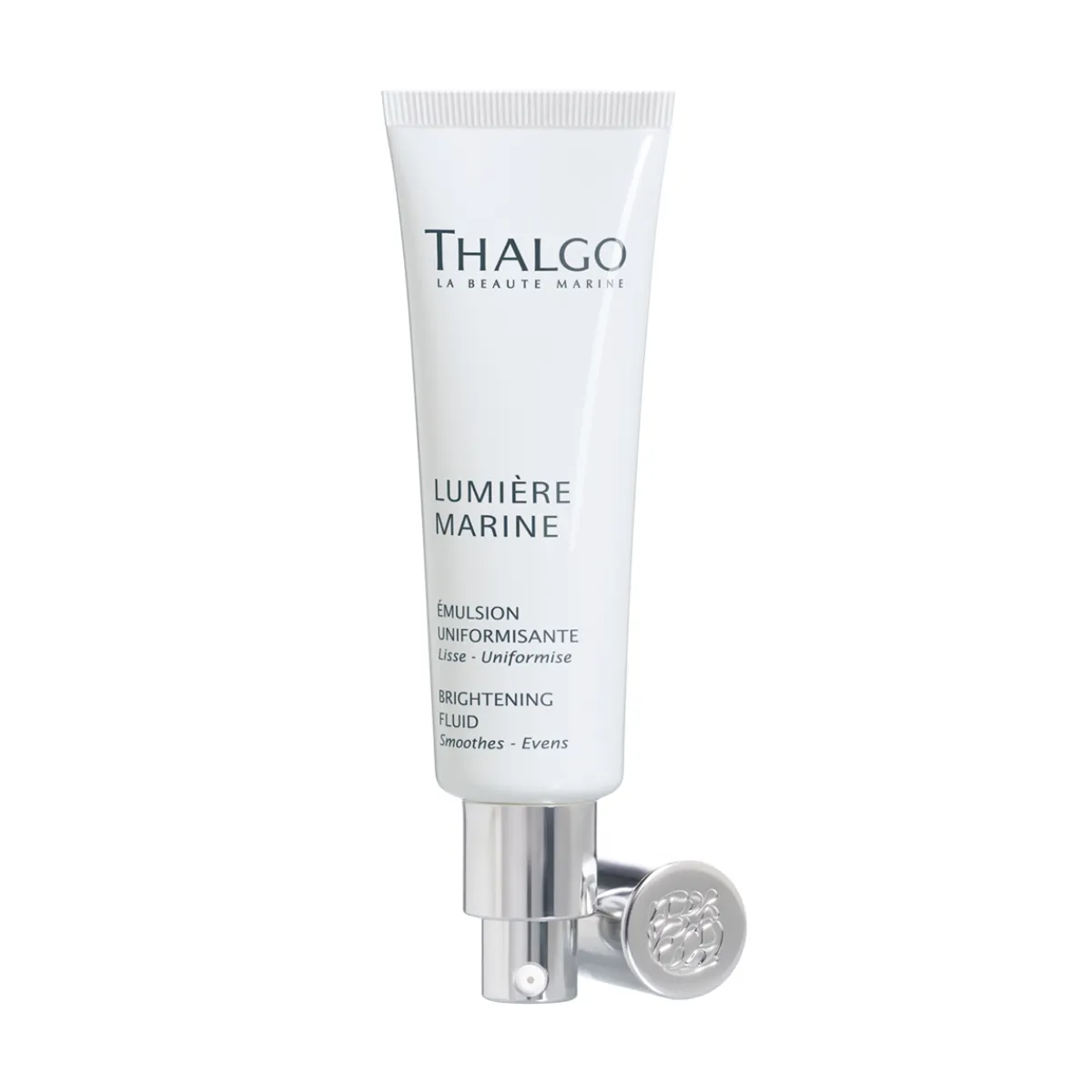 Rozjasňujúce fluidum proti pigmentovým škvrnám Thalgo Lumiére Marine pôsobí ako naozajstný štít proti environmentálnemu oxidatívnemu stresu, ktorý je príčinou nadmernej pigmentácie a taktiež mdlej pleti. Viditeľne vyhladí pleť, vyrovnáva jej odtieň a obnovuje prirodzený jas. Denne minimalizuje tmavé škvrny vďaka extraktu z hnedej riasy. Obsahuje polysacharidy s vysokou molekulárnou hmotnosťou, ktoré na pleti tvoria odolnú ochrannú sieť. Má ľahkú textúru a jemnú vôňu bavlny a bielych kvetov. Fluid je vhodný pre normálnu až zmiešanú pleť. Pre normálnu až suchú pleť je vhodnejší Rozjasňujúci krém.