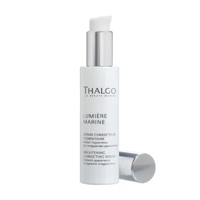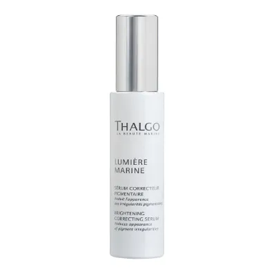 Rozjasňujúce nápravné sérum Thalgo Lumiére Marine redukuje tmavé škvrny, minimalizuje nepravidelnú pigmentáciu, vyrovnáva odtieň pleti a vyhladzuje. Chráni pleť pred oxidačným environmentálnym stresom, ktorý je príčinou nadmernej pigmentácie a taktiež mdlej pleti. Navracia pleti mladistvý vzhľad. Vďaka extraktu z hnedej morskej riasy a rozjasňujúcim aktívnym látkam napravuje šedé, červené aj žlté pigmentové škvrny. Vyhladzuje mikroreliéf pleti. Má mliečnu, krémovú textúru a jemnú vôňu bavlny a bielych kvetov.