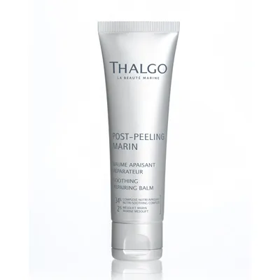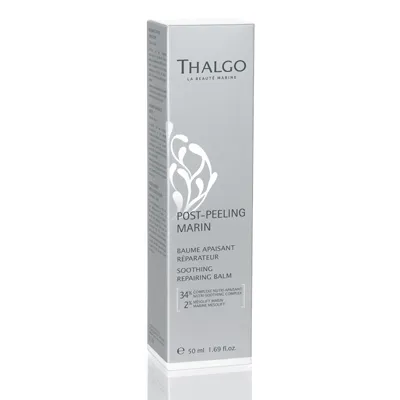 Thalgo Peeling Marin Upokojujúci nápravný balzam je ideálny po peelingu. Okamžite a intenzívne upokojuje a vyživuje pleť. Neobsahuje parfum a je nekomedogénny. Je vhodný pre všetky typy pleti.