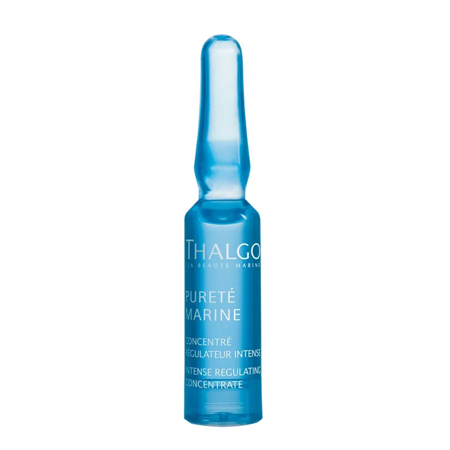 Intenzívny regulační koncentrát Pureté Marine Thalgo je normalizujúca 7 denná starostlivosť na mastnú a zmiešanú pleť. Znižuje nadmernú tvorbu mazu. Mení jeho kvalitu a čistí póry, pôsobí proti akné. Starostlivosť znižuje hustnutie pleti, ktoré spôsobuje upchávanie pórov. Vaša pleť bude žiariť zdravím. Má konzistenciu jemného vodného lotion.