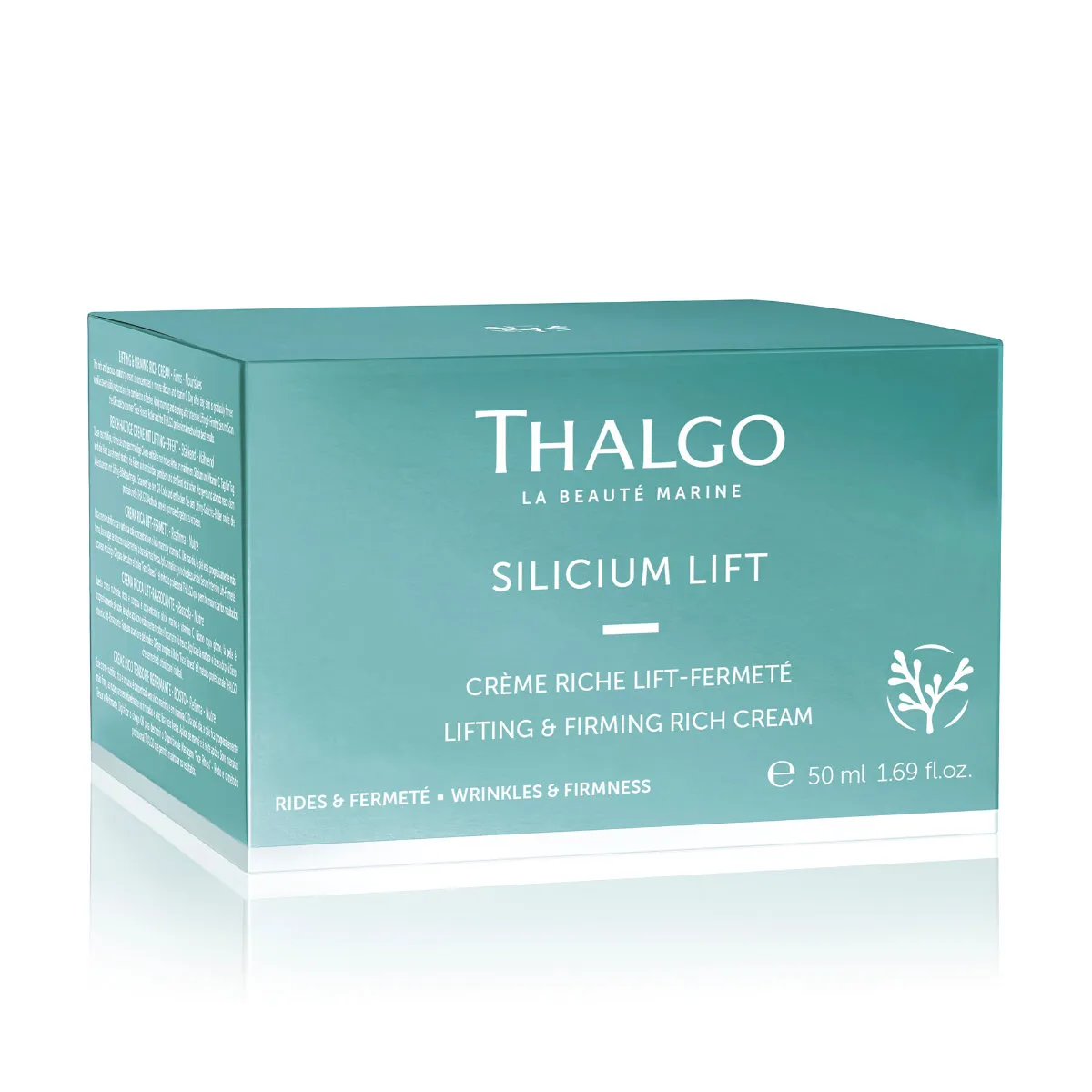 Liftingový a spevňujúci krém Thalgo Silicium Lift s obsahom riasového komplexu bohatého na morské silícium a vitamín C redukuje vrásky a jemné linky, posilňuje pleť a navracia jej svieži vzhľad. Krém je obohatený o malinové semienka s vyživujúcim účinkom. Má prepychovú bohatú textúru.