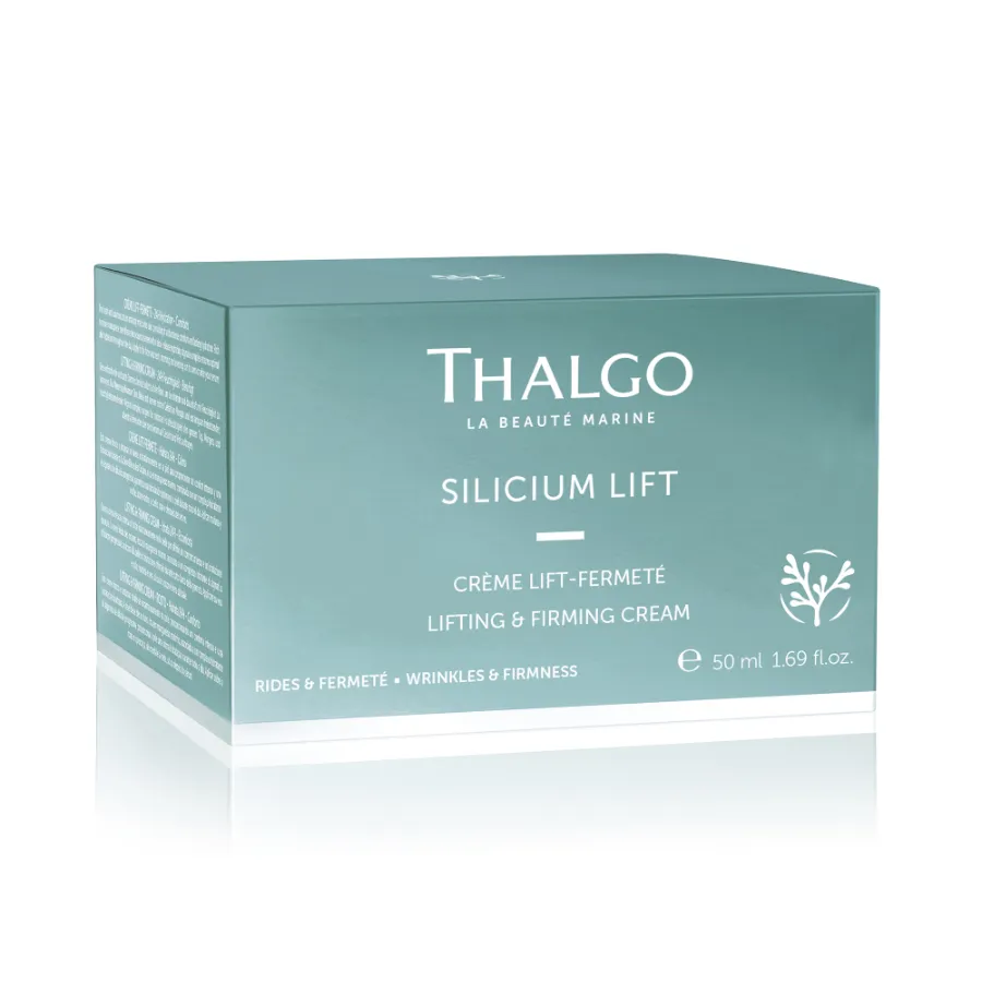 Liftingový a spevňujúci krém Thalgo Silicium Lift s obsahom riasového komplexu bohatého na morské silícium a vitamín C redukuje vrásky a jemné linky, posilňuje pleť a navracia jej svieži vzhľad. Krém je obohatený o kyselinu hyaluronovú s vysokou molekulárnou hmotnosťou s okamžitým hydratačným efektom. Jeho jemná textúra sa rozplýva na pleti.