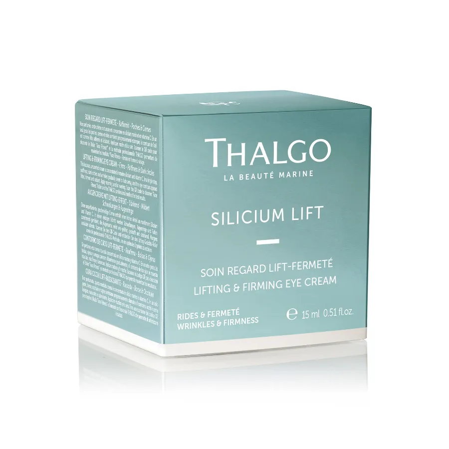 Liftingový a spevňujúci krém na očné okolie Thalgo Silicium Lift s obsahom riasového komplexu bohatého na morské silícium a vitamín C spevňuje a posilňuje očné kontúry, redukuje vrásky a jemné linky. Ferment mikroorganizmu zo slanorožca pôsobí proti opuchom a tmavým kruhom. Zlepšuje obeh a zamedzuje hromadeniu melanínu, ktorý spôsobuje mdlý vzhľad. Prepychová textura sa rozplýva na pleti a nezanecháva mastný finiš. Bez parfumácie.