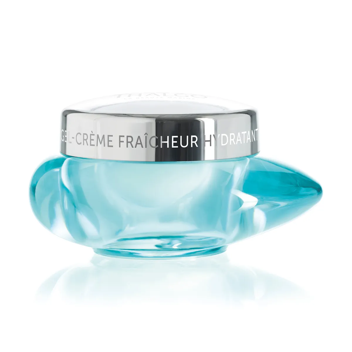 Hydratačný chladivý gélový krém Thalgo Source Marine prináša okamžitý pocit sviežosti a má 24H účinok. Morská voda Seve Bleue des Océans, bohatá na morský mangán, posilňuje kožnú bariéru a obmedzuje stratu vody z pleti. Súčasne obnovuje zásobu vody a zvyšuje jej výmenu v bazálnej membráne. Filtrát patentovaných Mikronizovaných morských rias dodáva pleti minerály a mikroživiny, ktoré sú nevyhnutné na jej správne fungovanie. Pleť revitalizuje a posilňuje. Krém je obohatený o sieť alginátov nasýtenú hydratačnými molekulami, ktoré sa postupne uvoľňujú do pleti a poskytujú 24H účinok. Má gélovú textúru s osviežujúcim efektom.