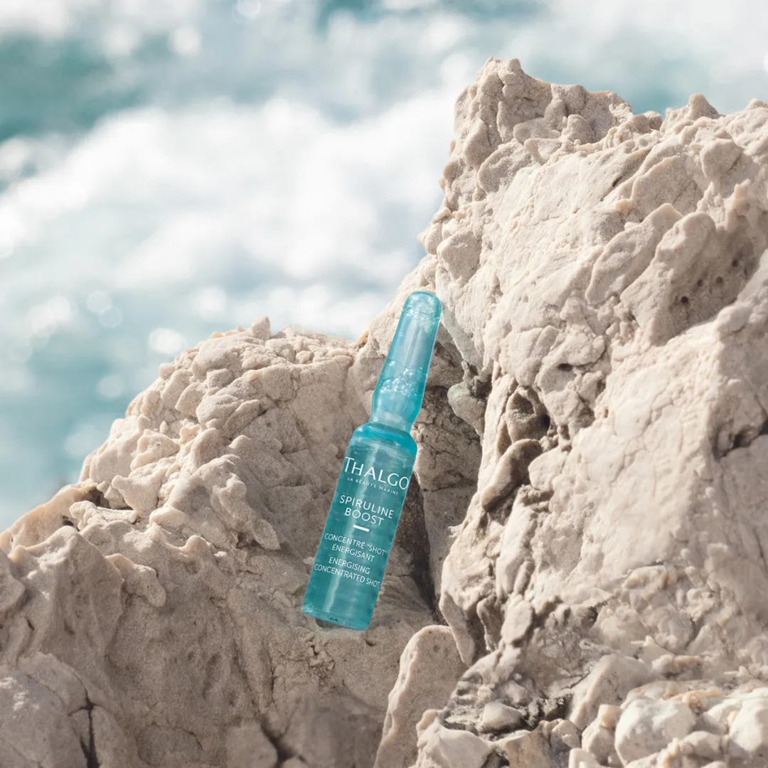 Energizujúci koncentrát Thalgo Spiruline Boost vyhladzuje vrásky a obnovuje žiarivosť pleti už za 7 dní. Spirulina je modrozelená mikroriasa, ktorá má v kombinácii s morským horčíkom energizujúce a antioxidačné vlastnosti. Vitamín C intenzívne stimuluje pleť. Vysokomolekulárna kyselina hyalurónová okamžite vypĺňa vrásky a vyhladzuje pleť. Vaša pleť bude nabitá energiou a viditeľne osviežená. Koncentrát s energizujúcou morskou vôňou má sviežu, tekutú textúru, ktorá sa rýchlo vstrebáva.
