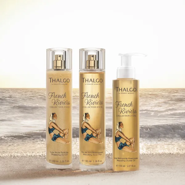 French Riviera je inšpirovaná príjemnou vôňou slnečnej kozmetiky Thalgo s tónmi plumérie, kokosu a ambry. Zloženie obohatené o aloe vera