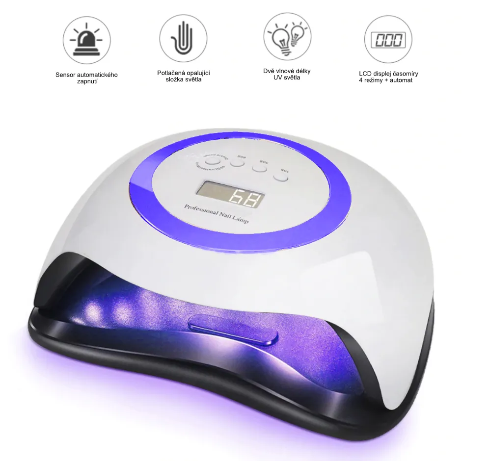 Profesionálna UV LED lampa pre vytvrdnutie gélových lakov na nechty. Vytvrdnutie už za 10s vďaka 42 výkonným UV LED s dvoma vlnovými dĺžkami žiarenia.