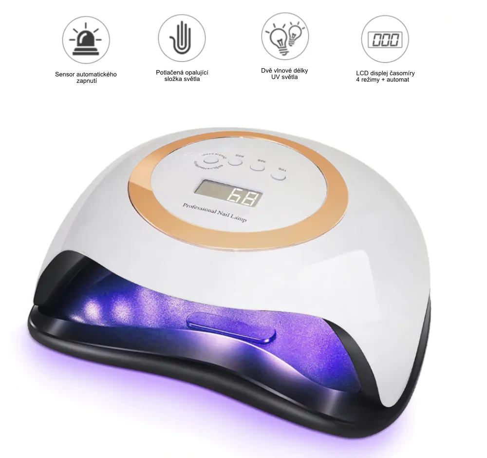 Profesionálna UV LED lampa s dvojitou vlnovou dĺžkou a výkonom 168W / 42 LED vytvrdzuje gélové laky a starostlivosť už za 10s.