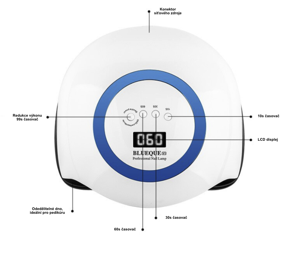 Zníženie teploty - stlačením tlačidla v pohotovostnom režime dôjde k aktivácii 99s odpočtu, kedy prístroj sám upravuje výkon LED tak, aby znížil teplotu na úkor dlhšieho času.