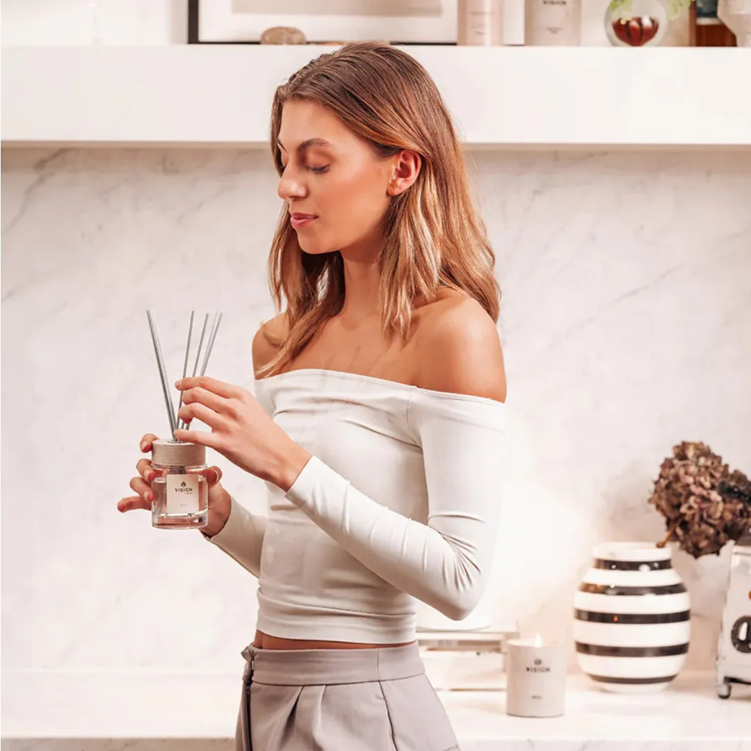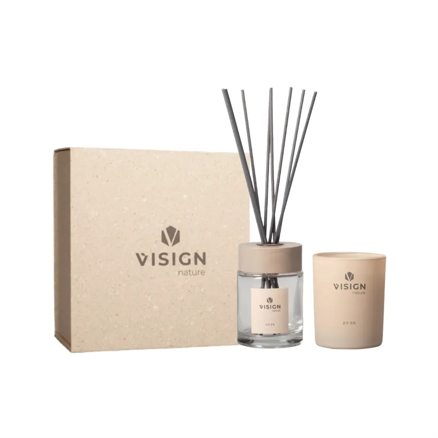 Vytvorte si voňavé príbehy vášho domova ušité na mieru so štýlovými a udržateľnými produktami VISIGN NATURE. Sú vegánske a cruelty-free. Neobsahujú parabény, sulfáty, minerálne oleje, mikroplasty, lepok, ethanolamin, cyklické silikóny a PEG zlúčeniny. Obal je vyrobený z cukrovej trstiny a plno recyklovateľný.