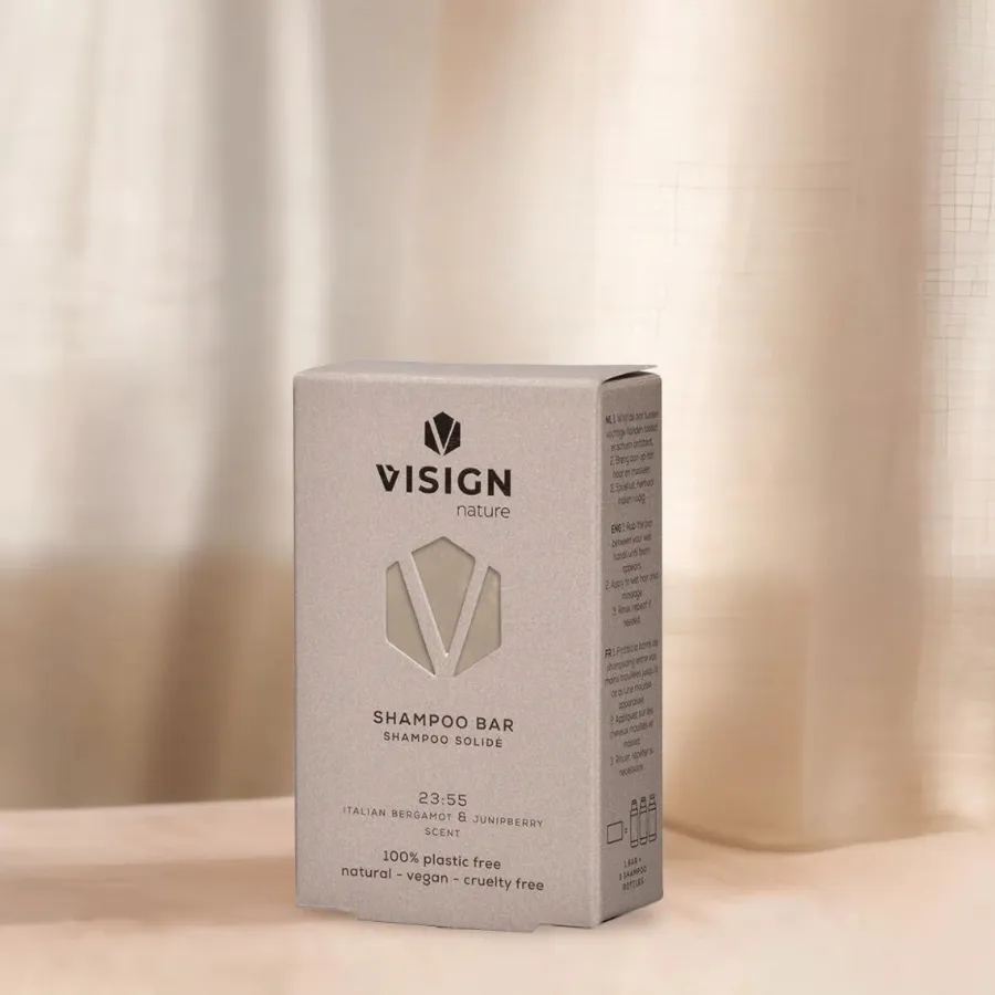 Šampón obsahuje bambucké maslo a argánový olej, ktoré vyživujú vlasy. Aloe vera hydratuje pokožku a ryžový proteín zase dodá vašim vlasom objem. Po použití, vložte šampón do nášho obalu, vytvoreného práve pre tieto tuhé produkty, ktorý sa dá zavesiť i za uško. Vhodné pre všetky typy vlasov. Kúpeľové a telové produkty VISIGN NATURE obsahuju olejový extrakt zo santálového dreva, damašskú ružu a extrakt z eukalyptu. Perfektná starostlivosť pre výživu a hydratáciu pokožky. Sú vegánske a cruelty-free. Neobsahujú parabény, sulfáty, minerálne oleje, lepok, ethanolamin, cyklické silikóny a PEG zlúčeniny. Obal je vyrobený z cukrovej trstiny a plno recyklovateľný.