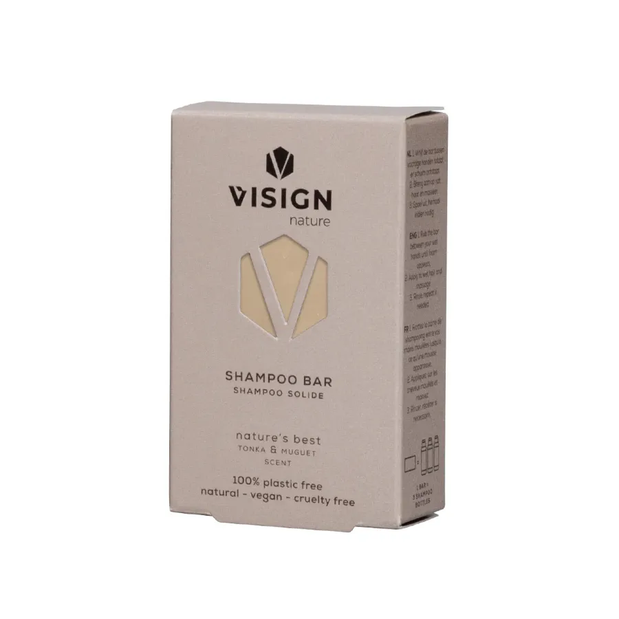 Šampón obsahuje bambucké maslo a argánový olej, ktoré vyživujú vlasy. Aloe vera hydratuje pokožku a ryžový proteín zase dodá vašim vlasom objem. Po použití, vložte šampón do nášho obalu, vytvoreného práve pre tieto tuhé produkty, ktorý sa dá zavesiť i za uško. Vhodné pre všetky typy vlasov. Kúpeľové a telové produkty VISIGN NATURE obsahuju olejový extrakt zo santálového dreva, damašskú ružu a extrakt z eukalyptu. Perfektná starostlivosť pre výživu a hydratáciu pokožky. Sú vegánske a cruelty-free. Neobsahujú parabény, sulfáty, minerálne oleje, lepok, ethanolamin, cyklické silikóny a PEG zlúčeniny. Obal je vyrobený z cukrovej trstiny a plno recyklovateľný.