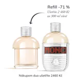 Na svetovom trhu s vôňami zaujme unikátnym vyhotovením flakóna s LED obrazovkou, ktorá zdobí doplňovaciu fľaštičku parfumovej vody vo veľkosti 150 ml. Tento exkluzívny technologický designový prvok je ideálny k osobnému vzkazu alebo želaniu a je trvalou ozvenou ducha značky Moncler.