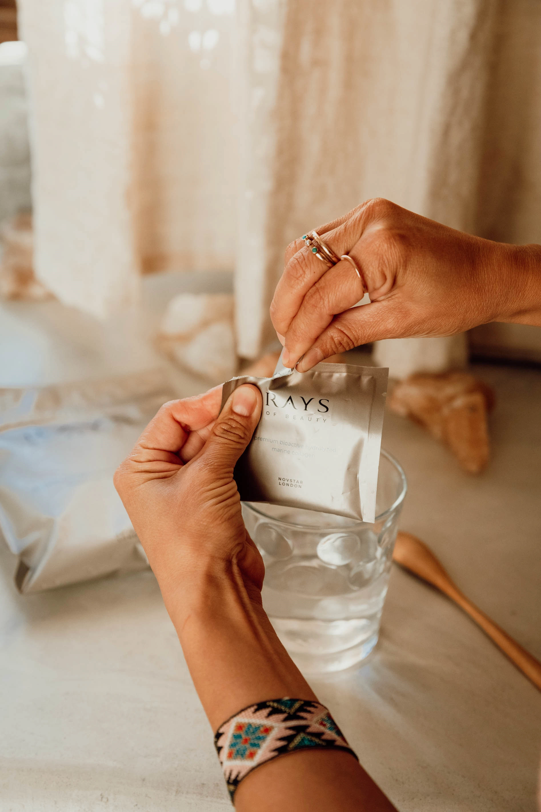 Rays Anti-age elixír je ako naozajstný elixír krásy. Harmonizuje nielen na fyzickej úrovni, ale pôsobí blahodarne aj na nervovú sústavu. Pohladká teda i na duši. Bol navrhnutý tak, aby pôsobil v súlade s prirodzenou funkciou ľudského tela. Obsahuje 22 dokonalo namixovaných ingrediencií. Pôsobí proti vráskam a ovysnutiu pleti, omladzuje a regeneruje pokožku celého tela. Pomáha s lámavými vlasmi a nechtami. Má príjemnú príchuť citrónu a malín.