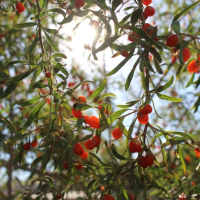 Súčasťou zmesi je aj prášok z kustovnice čínskej, ktorej plody obsahujú najviac antioxidantov zo všetkých druhov ovocia na svete. Červené bobule sladko-kyslej chute sú veľmi obľúbenou liečivou plodinou, ktorá sa v tradičnej čínskej medicíne používauž tisíce rokov. Starovekí liečitelia ju používali pre podporu prúdenia energie v systéme meridián a orgánoch, akými sú obličky, pľúca a pečeň. Okrem antioxidantov, bobule obsahujú aj vitamín C a vitamín A. Tieto látky spoľahlivo ochránia bunky pred oxidáciou a podporujú silu imunitného systému. Vitamín A zase podporí zdravie zraku.